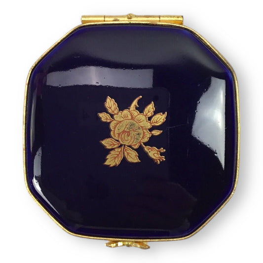 Limoges Cobalt Blue 22K Gold Trim Courtship Trinket Box & Mirror Set