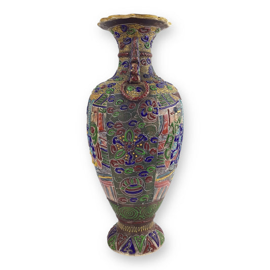 1870s Satsuma Meiji Era Two-Eared Temple Urn Vase – 18" Hand-Painted