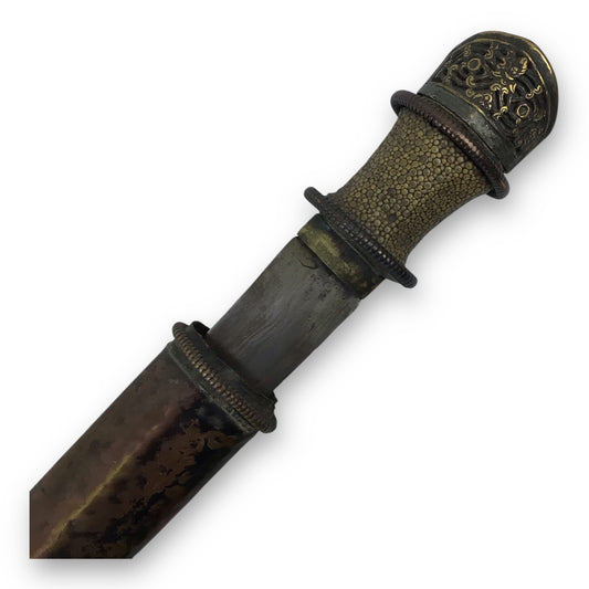Tibetan Dagger 17th–18th C – Damascus Steel Blade, Gilt Pommel, Rare Find