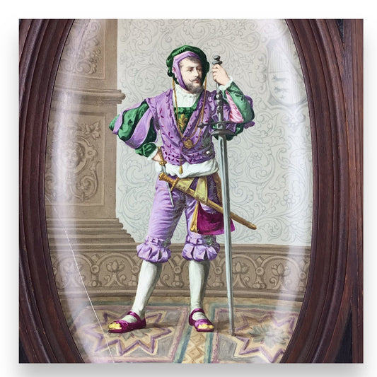Antique German Porcelain Plaque of a Landsknecht Warrior, 19th Century