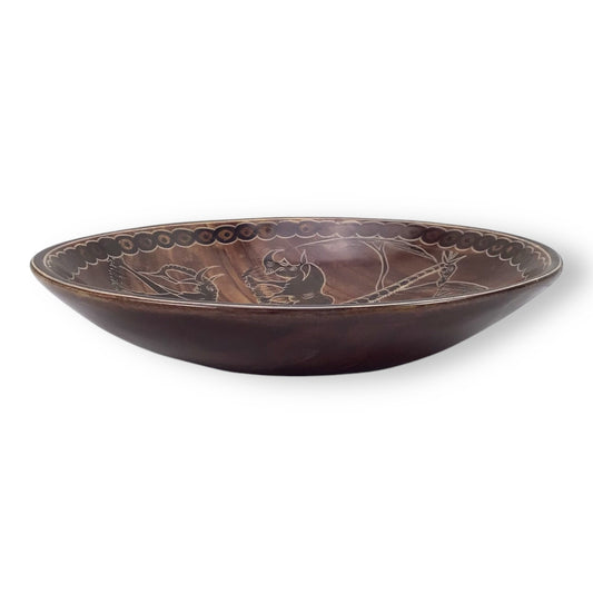 Kenyan Hand-Carved Soapstone Dish – African Savanna Scene, 10"