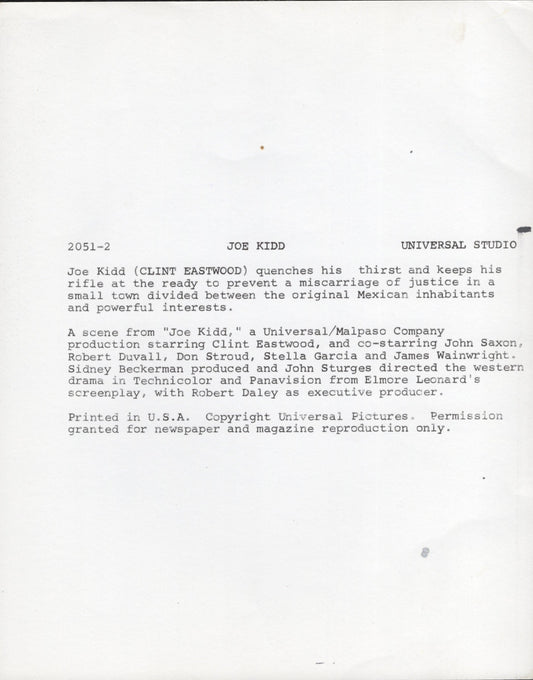 Clint Eastwood Signed Photo 7.5x9 – Joe Kidd Official Universal Studios B&W Promo Photo