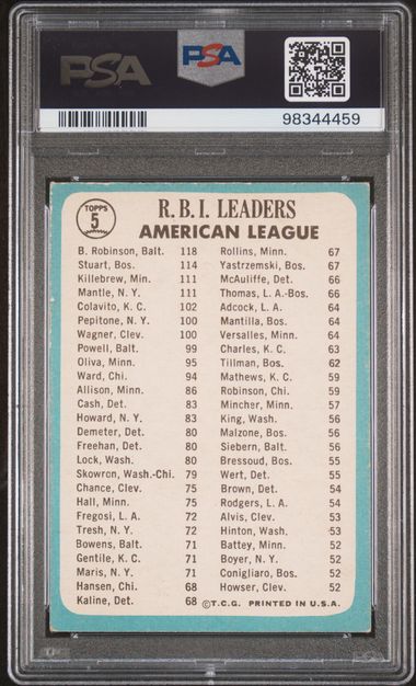 1965 Topps AL RBI Leaders Robinson Stuart Mantle Killebrew PSA 4 - 98344459