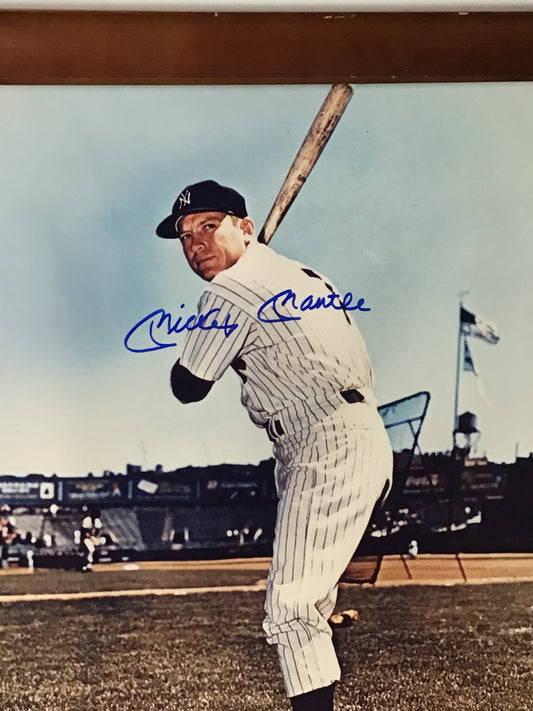 Mickey Mantle Signed Photo w/ Beautiful Wood Frame and G.A. Certification