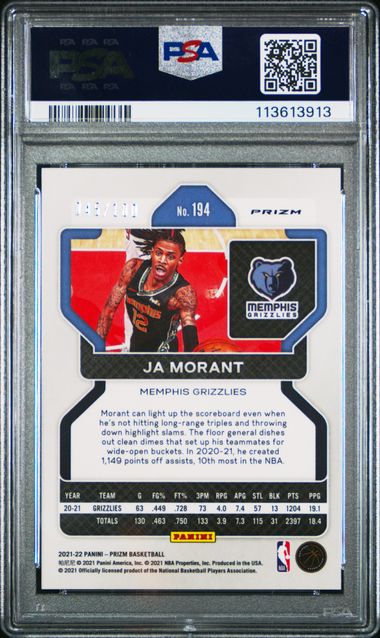2021 Prizm Red Fast Break #194 Ja Morant /100 Pop 6 PSA 9 - 113613913