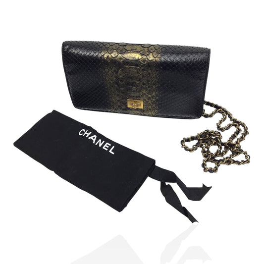 CHANEL Python Wallet On Chain WOC Black and Gold Evening Bag Purse