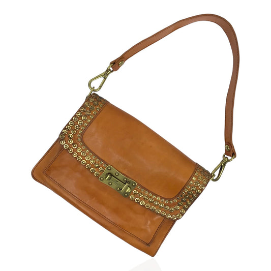 Campomaggi Italian Designer Studded Camel Leather Handbag w/ Strap