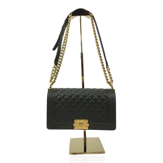 Chanel Medium Boy Bag in Khaki Quilted Lambskin