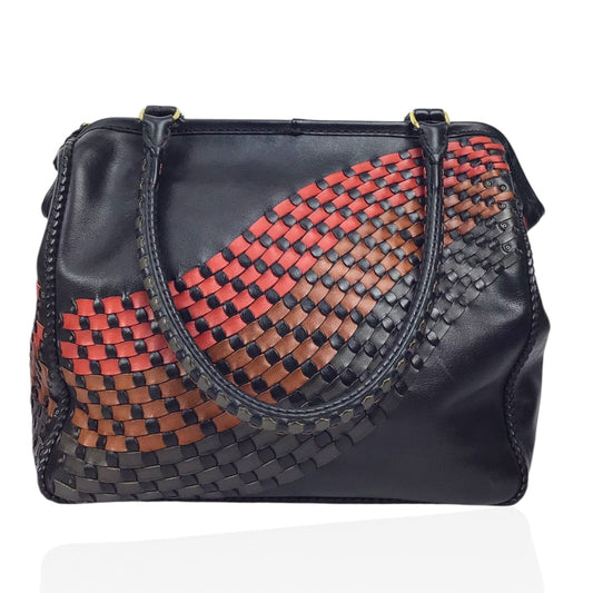 Gon Weave Midsize Handcrafted Shoulder Bag in Natural Leather, Plutos