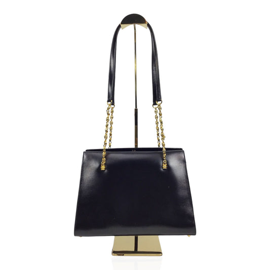 Gucci Black Calfskin Leather Handbag w/ Gold and Leather Straps