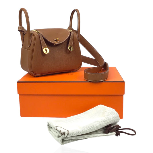 Hermès Mini Lindy 20 in Gold Calfskin Leather, 2023