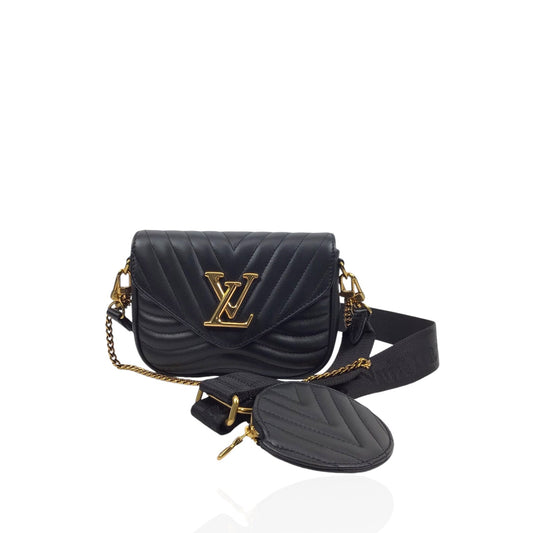 Louis Vuitton New Wave Multi Pochette Black Calfskin, Gold Hardware