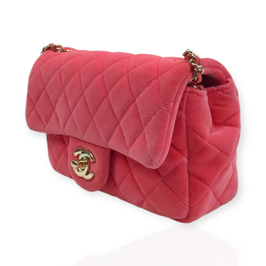 Chanel Mini Pearl Crush Flap - Pink Velvet Quilted Mini Rectangle Handbag