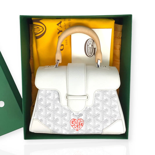 Goyard Saigon Souple Mini White Goyardine Canvas & Leather Bag - New w/ Box