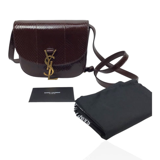 YSL Kaia Brown Lizard-Embossed Leather Handbag – Elegant Gold Hardware