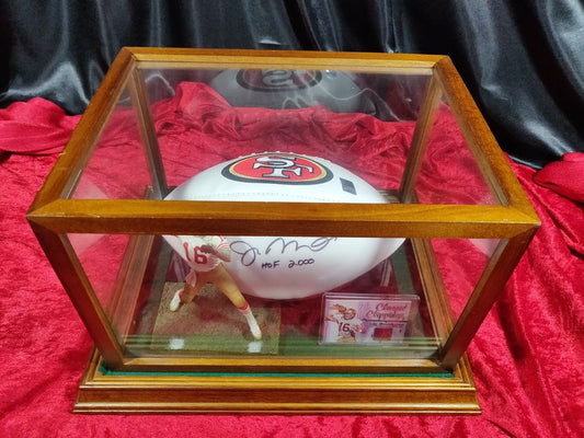 Joe Montana Jerry Rice Signed Football Shadowbox 49ers w/ Card & Figures GT Sports