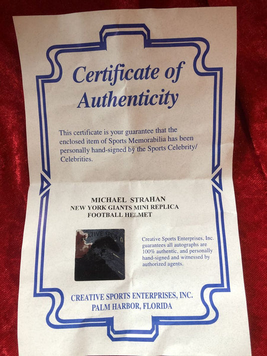 Michael Strahan Giants Signed Mini Helmet Shadowbox w/ Card, Figure, COA