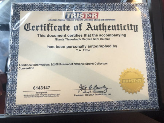 Y.A. Tittle Giants Autographed Mini Helmet Shadowbox w/ Card & Figure COA