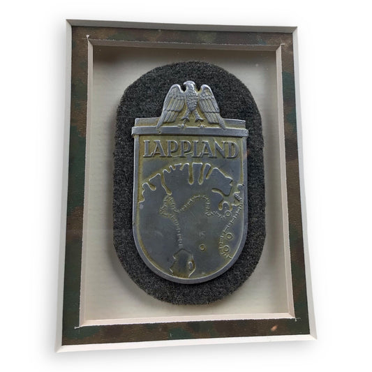 German WW2 Lappland Shield with Award Document Professionally Framed
