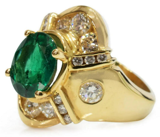 14KT Yellow Gold Ring w/ 1.65ct Emerald & 1.00ct Diamond Accents