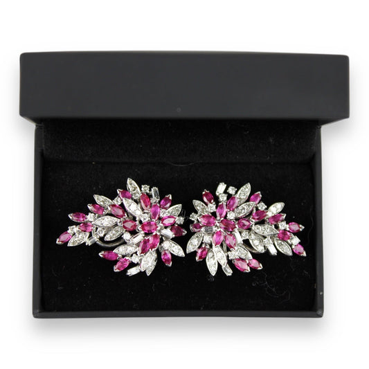 Exquisite Ruby & Diamond Earrings in 14kt White Gold - Estate Jewelry