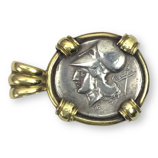 Greek Coin Pendant in 18KT Gold with Diamonds – Pegasus & Athena