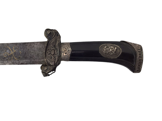 French Hunting Sword 18th C Rev War Era Silver Hilt Gold Inlaid Blade Rare