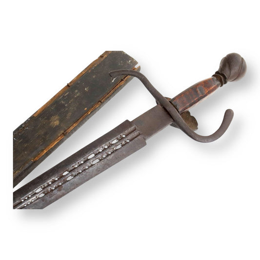 Rare Italian Nobleman's Falchion Sword w/ Pierced Fullers & Scabbard -Mid 16th C