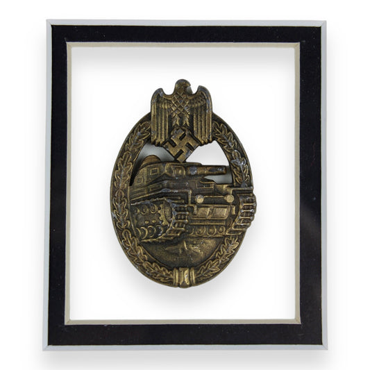 Panzer Tank Combat Badge in Bronze w/ Award Document Framed and Matted