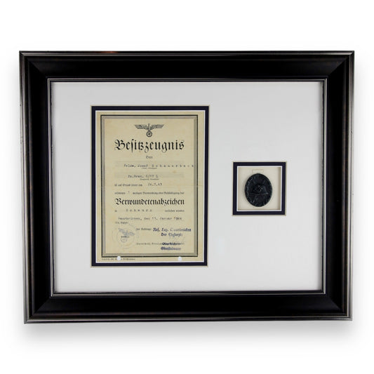 Silver Wound Badge 2nd Class with Award Doc to SS Officer Framed