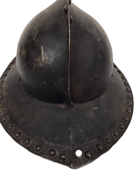 17th-Century English Civil War Pikeman's Helmet with Original Black Paint