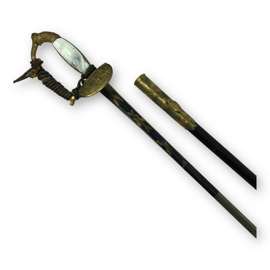 Rare German Diplomatic Sword – Napoleonic Era, ca. 1860 | Pearl Grip & Blue-Gold Inlay