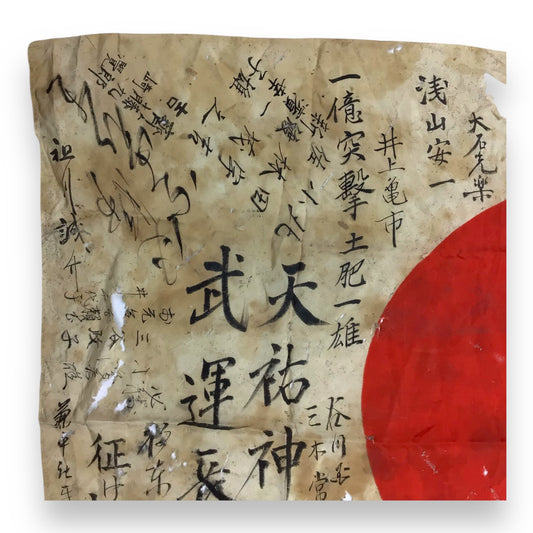 Japanese WWII Signed Kamikaze Flag – Yosegaki Hinomaru - Authentic Wartime Wear