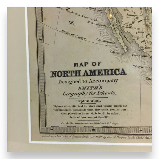 Antique Map of North America, Early Texas Republic & Russian Alaska - 1839