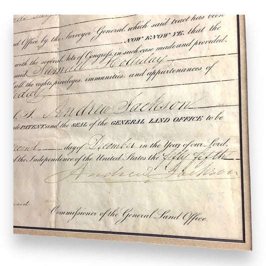 Andrew Jackson Signed and Framed Presidential Land Grant – Dated 1829