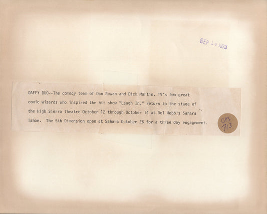 Dick Martin & Dan Rowan Signed Photo 8x10 B&W Laugh In