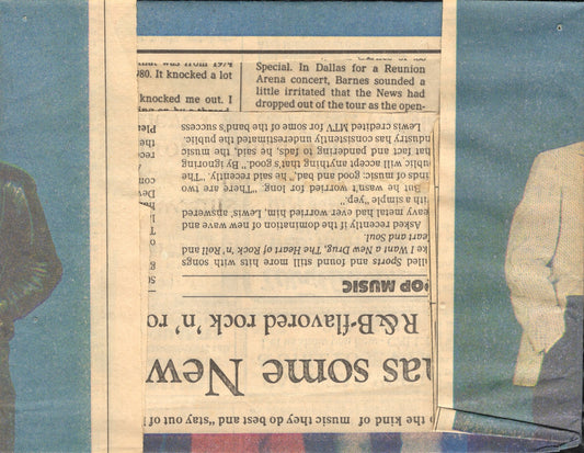 Huey Lewis Signed Index Card 2.5x3.75 on Newspaper Photo 7x5.5, Huey Lewis Autograph, JSA Certified Authentic UU42100