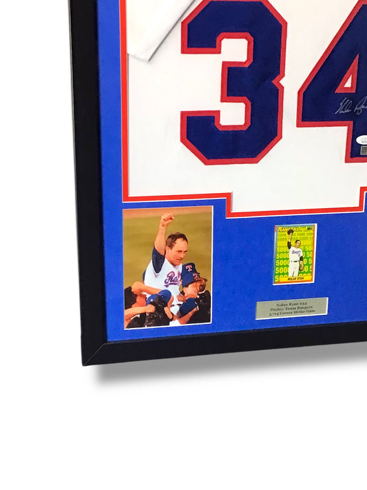 Nolan Ryan Texas Rangers Framed Signed Jersey w/ JSA Cert & Sports Card