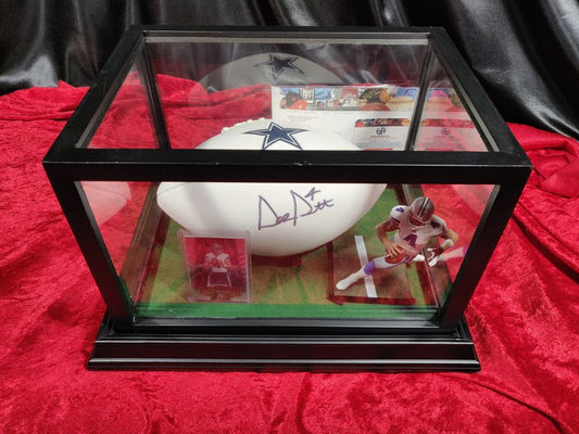 Emmitt Smith Dallas Cowboys Autographed Football Shadowbox with Card and Figure