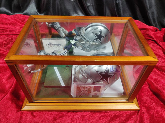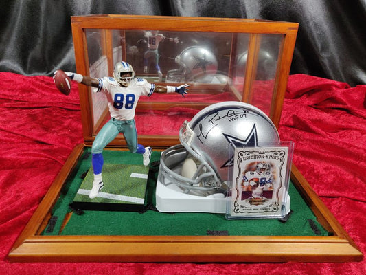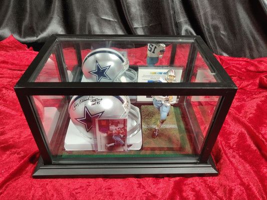 Michael Irvin Cowboys Autographed Mini Helmet Shadowbox w/ Jersey Card + Figure