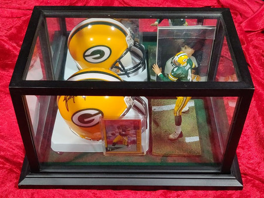 Brett Favre Green Bay Packers Autographed Mini Helmet Shadowbox w/ Card and Figure