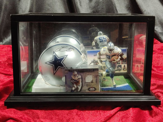 Emmitt Smith Cowboys Autographed Mini Helmet Shadowbox w/ Jersey Card and Figure