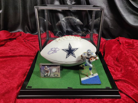 Emmitt Smith Dallas Cowboys Autographed Football Shadowbox with Card and Figure