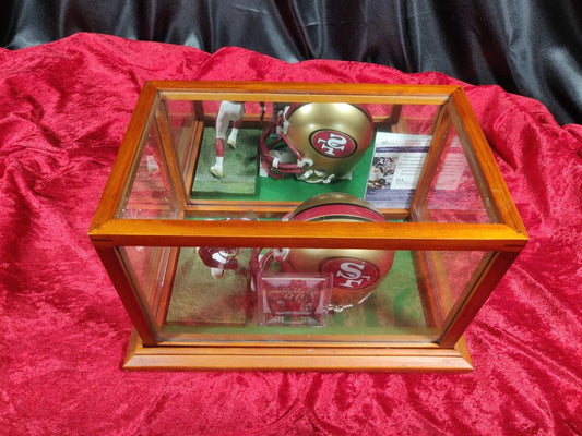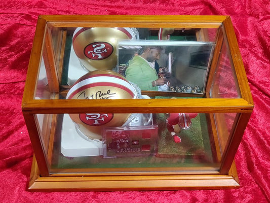 Jerry Rice 49ers Autographed Mini Helmet Shadowbox w/ Jersey Card + Figure