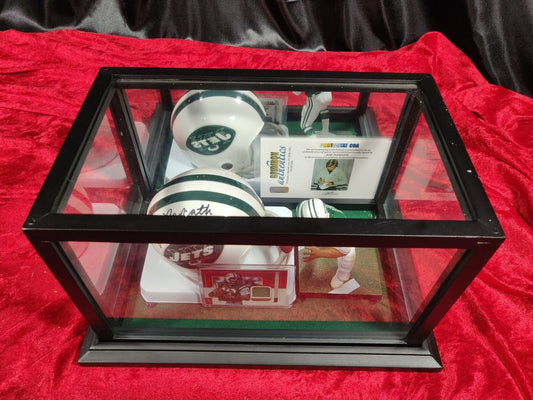 Joe Namath New York Jets Autographed Mini Helmet Shadowbox w/ Card and Figure
