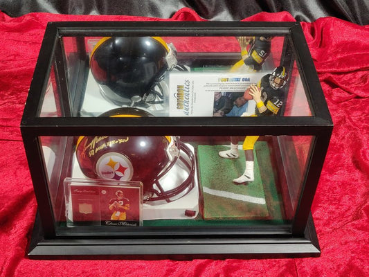 Terry Bradshaw Steelers Autograph Mini Helmet Shadowbox w/ Jersey Card + Figure