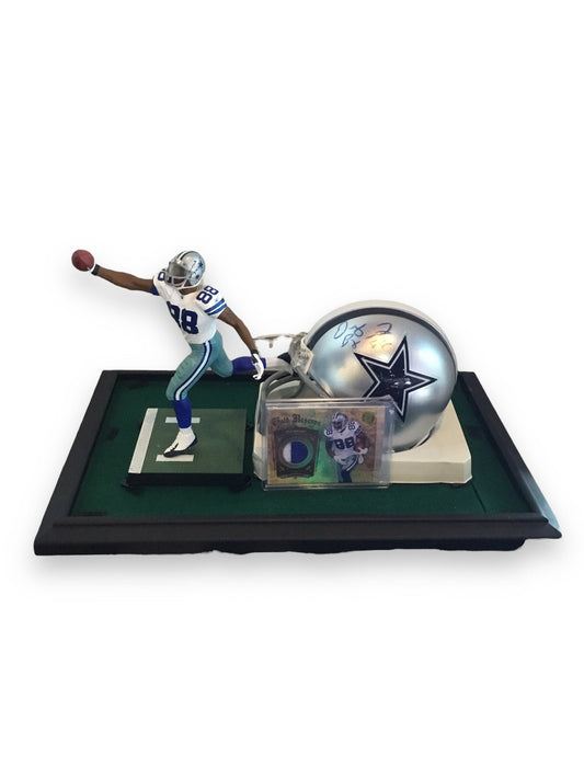 Dez Bryant Cowboys Autographed Mini Helmet Shadowbox w/ Jersey Card + Figure (Gold Card)