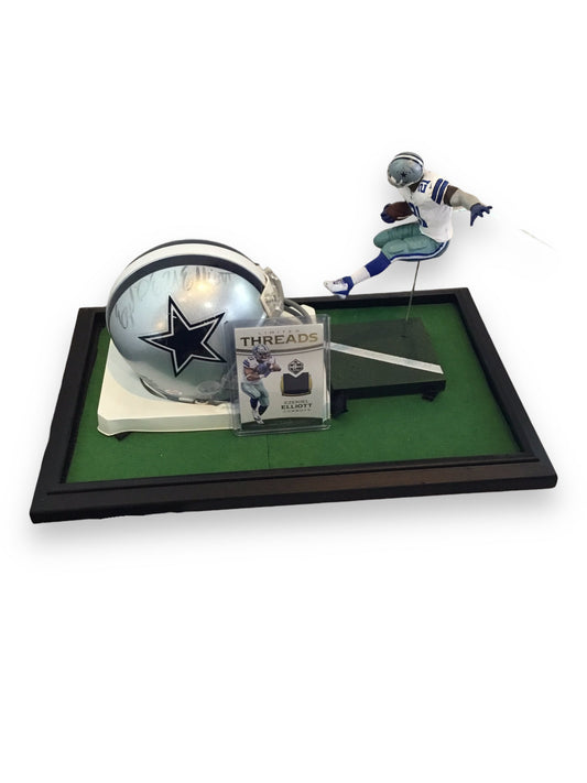 Ezekiel Elliot Cowboys Autographed Mini Helmet Shadowbox w/ Jersey Card + Figure