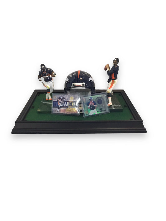 John Elway / Terrel Davis Autographed Mini-helmet Shadowbox W/ Jersey Card and action figure (Certified)