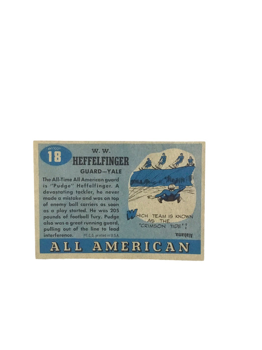 1955 Topps All-American #18 Pudge Heffelfinger Yale Rookie Football Card